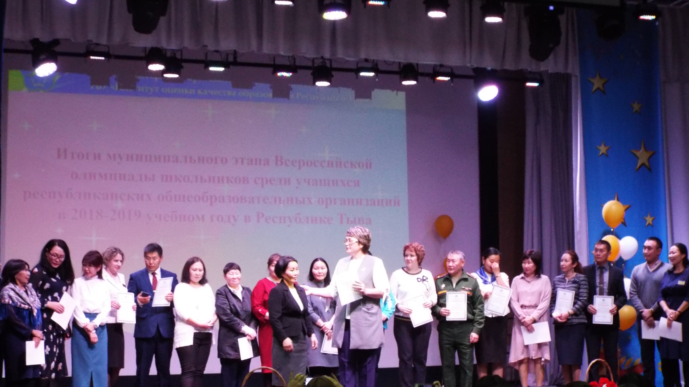 В честь славных победителей и призёров прозвучали поздравительные и напутственные речи от заместителя министра образования и науки Хардиковой Е. В., заместителя директора ГБУ «Институт оценки качества образования и науки Республики Тыва» Монгалбии Ш. М., председателей предметных жюри. Также своими красочными концертными номерами победителей и призёров олимпиады поздравили кадеты из Кызылского президентского кадетского училище.